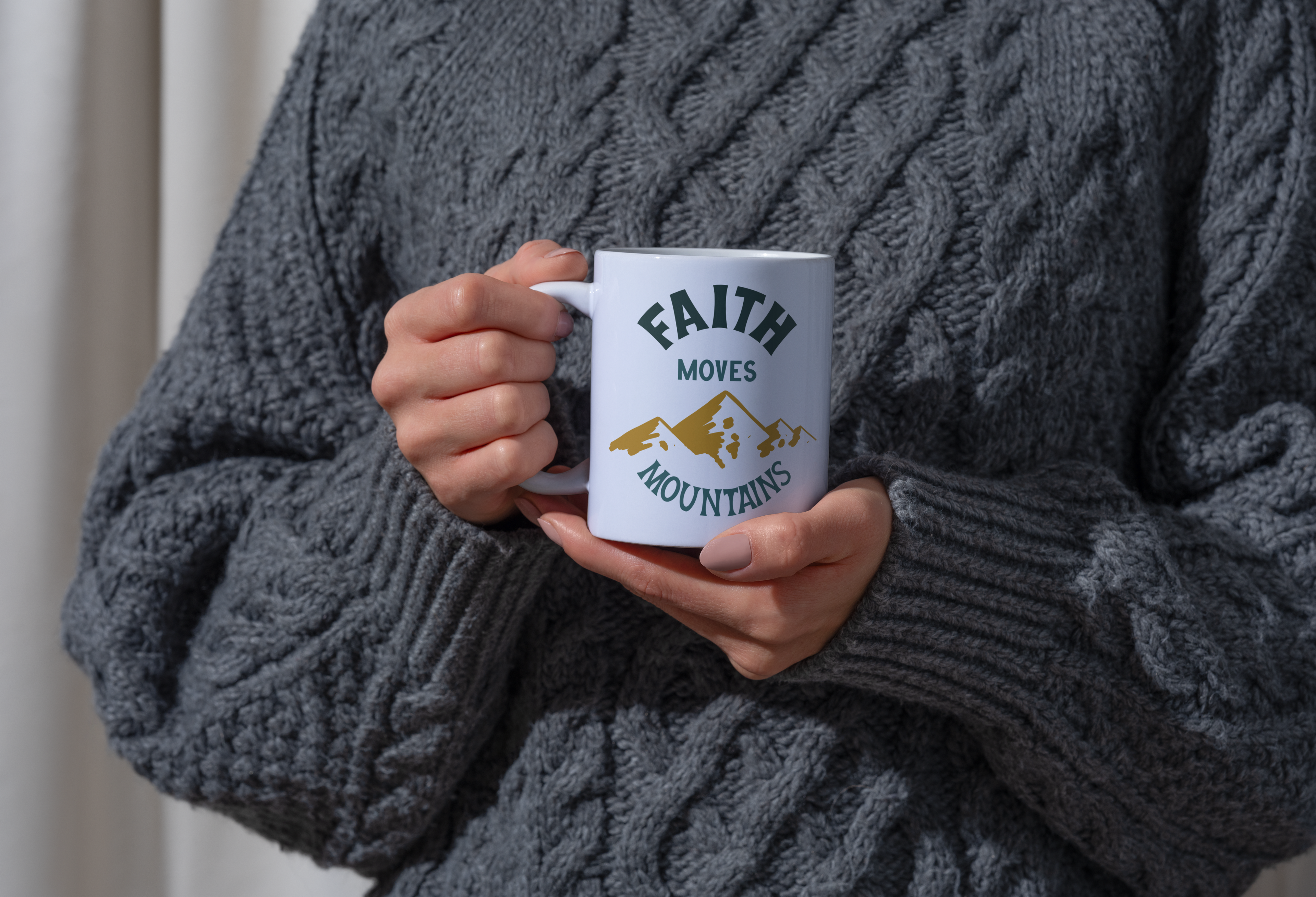 Earth-Tone "Faith Moves Mountains" Enamel Camping Mug (12oz)